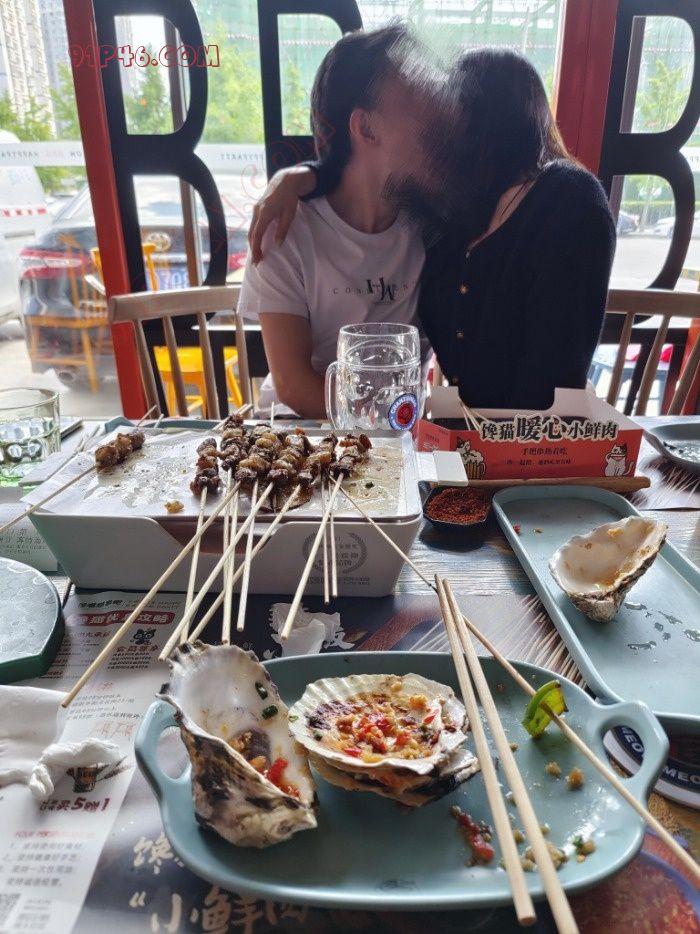 亲着亲着就开始揉胸了,一路顺着就奔私密地带抚摸下去了。完全当别人不存在啊,好几桌吃饭的呢。